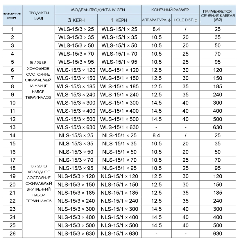 Корпус терминала взаимодействует с холодным сжимающимся ответвляющим пальцевым чехлом, холодным сжимающимся изоляционным трубкой и холодным сжимающимся герметизирующим трубопроводом; комплект промежуточных соединений использует трехслойную водонепроницаемую герметизацию для обеспечения отличных водоотталкивающих свойств аксессуаров.